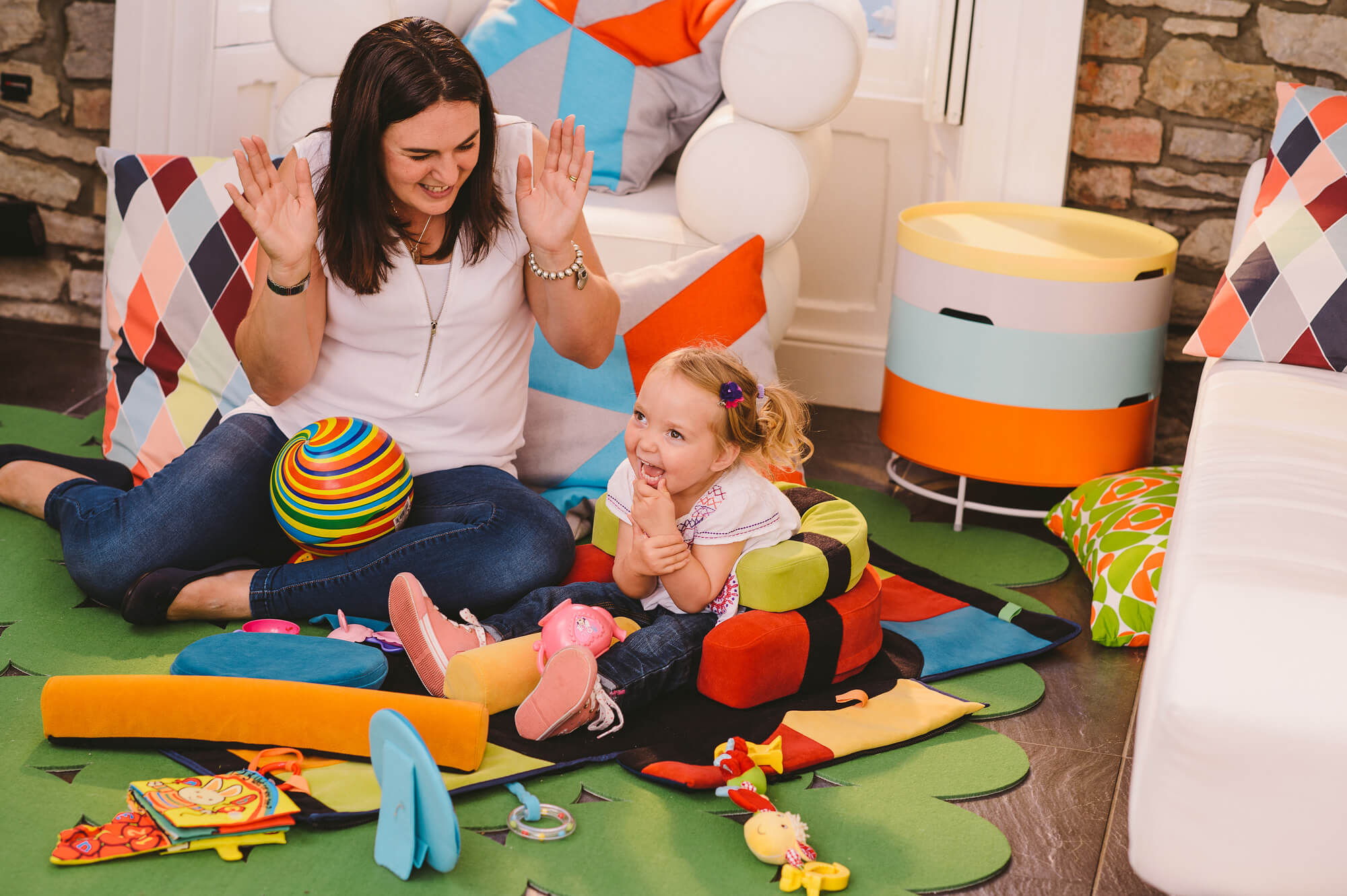 Once opened, this light bag reveals a colorful mattress, cylinders, wedges and supports that can be positioned in many ways to allow your child to face different positions essential for their development.