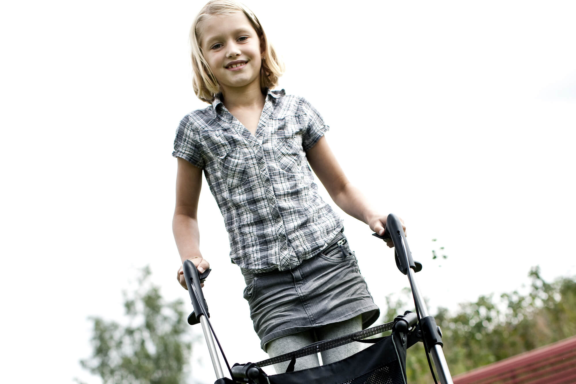 Children want to move about, play and discover the world. This is fully reflected in our lightweight Gemino 30 S rollator. Designed to enhance children’s mobility, it’s very stable, safe and simple to use. Also great for gait training. Naturally, this paediatric walker comes in cool colours – pink, blue and silver grey. And can be easily combined with a matching bag!
