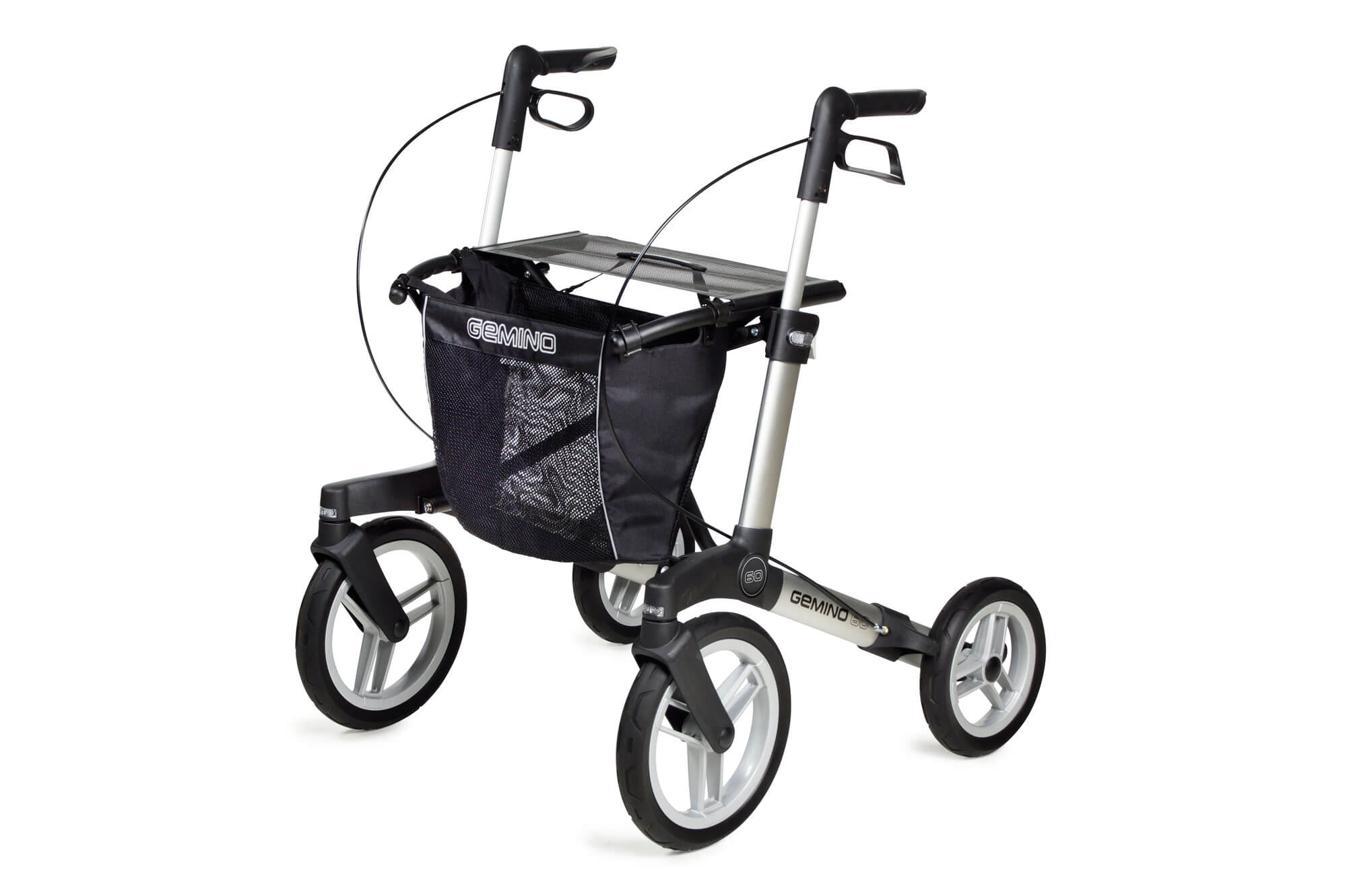 With the Gemino 60 you get all the key features of our award-winning Gemino 30 rollator. Easy height adjustment with memory function, a unique fold-and-click system, excellent brakes and integrated reflectors – just to name a few. The lightweight aluminium frame is available in two sizes. Select the size that suits you and enjoy 100% comfort, safety and design.
