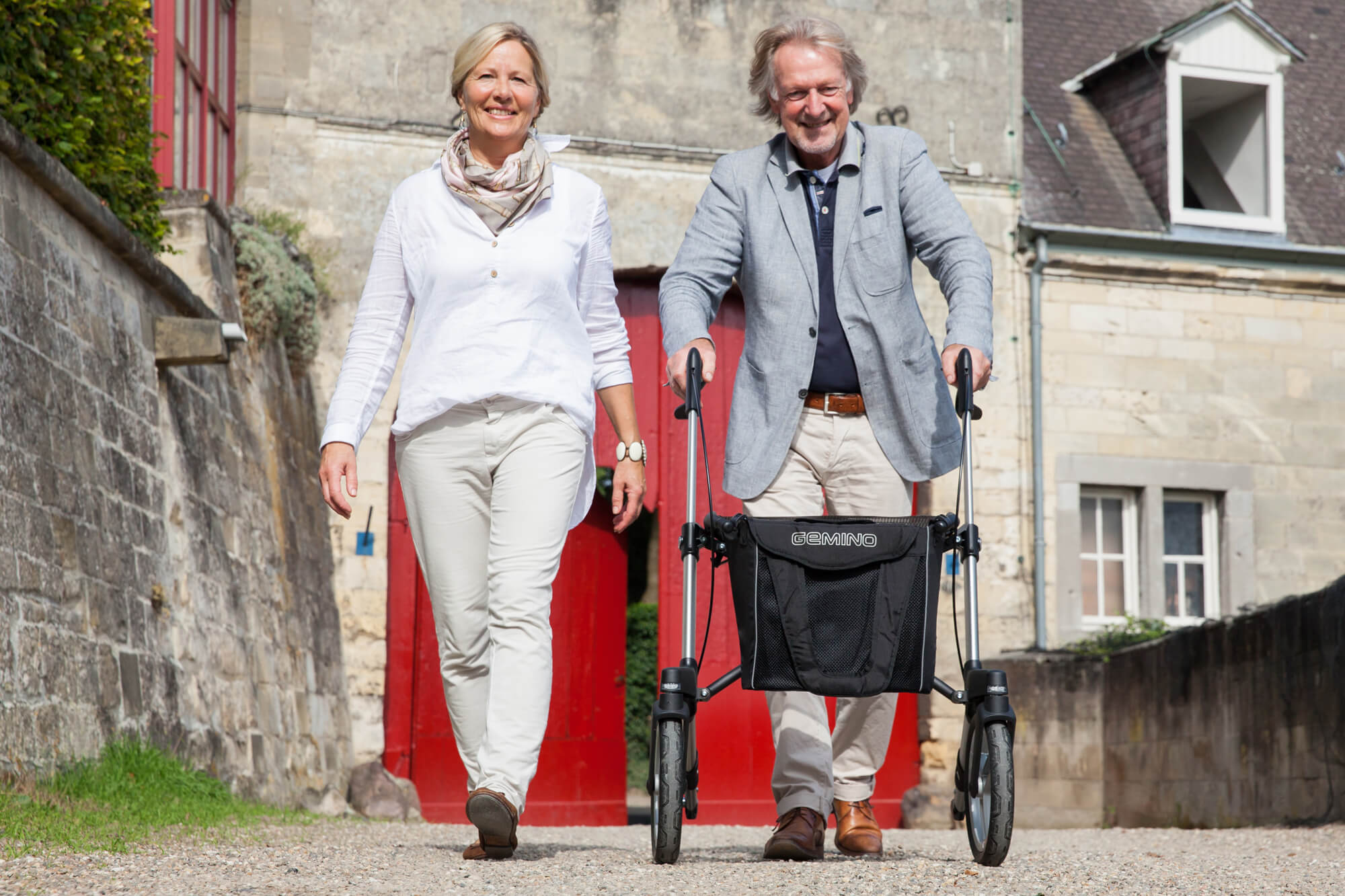 Let’s go! Gemino 60 is the perfect companion for your active lifestyle – lightweight yet rock-solid. With its extra-large, soft wheels this outdoor rollator allows you to walk comfortably and securely, also on uneven terrain. Strolling the cobblestone streets in the old town, enjoying a walk in the forest or simply crossing thresholds in your home? It will all be so much easier with the Gemino 60!