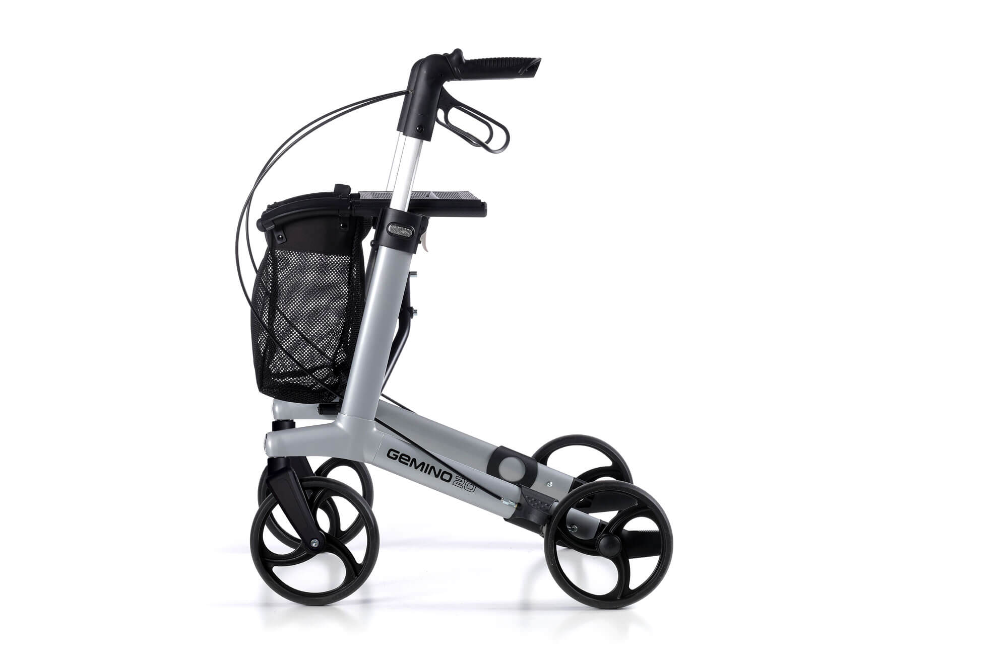 The Gemino 20 has all the technical characteristics of our award-winning Gemino 30 rollator, and can be combined with lots of practical accessories. Choose from three different frame sizes (colour Grey) – there’s always a model that fits your height. With this ‘basic’ Gemino you’ll enjoy 100% quality and functionality at an attractive price.