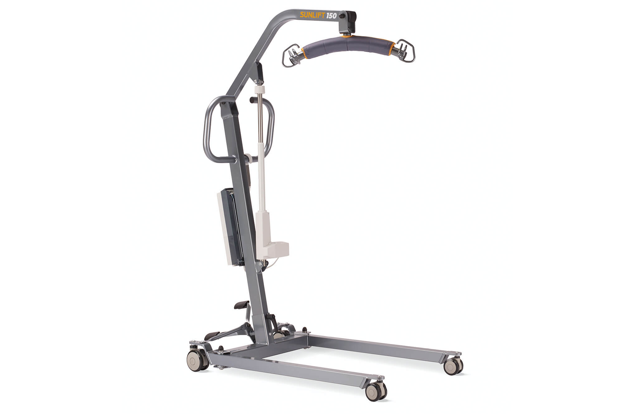 Ergonomic push handles for easier handling of the hoist from different attendant positions. Covered by a coat of paint very pleasant to the touch, easy to clean and hygienic.