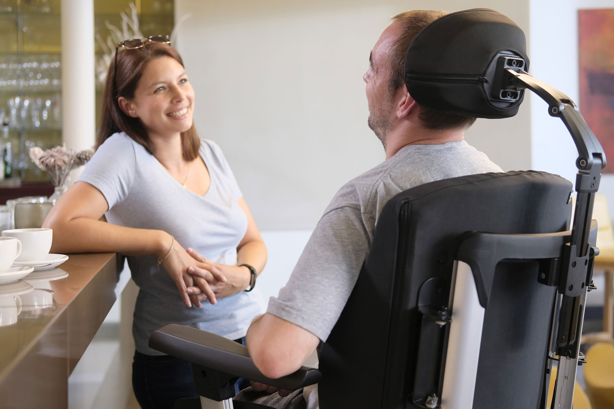 C-ME is all about seeing you, and just you. Elevate up to 300 mm whilst travelling 4.5 kph and move shoulder-to-shoulder with everyone around you. Plus, the suspension on your powerchair remains active even when you're elevated. So you get the same smooth and stable ride regardless of seat level. You can even lift or descend at the touch of a button with no need to stop while transitioning either!