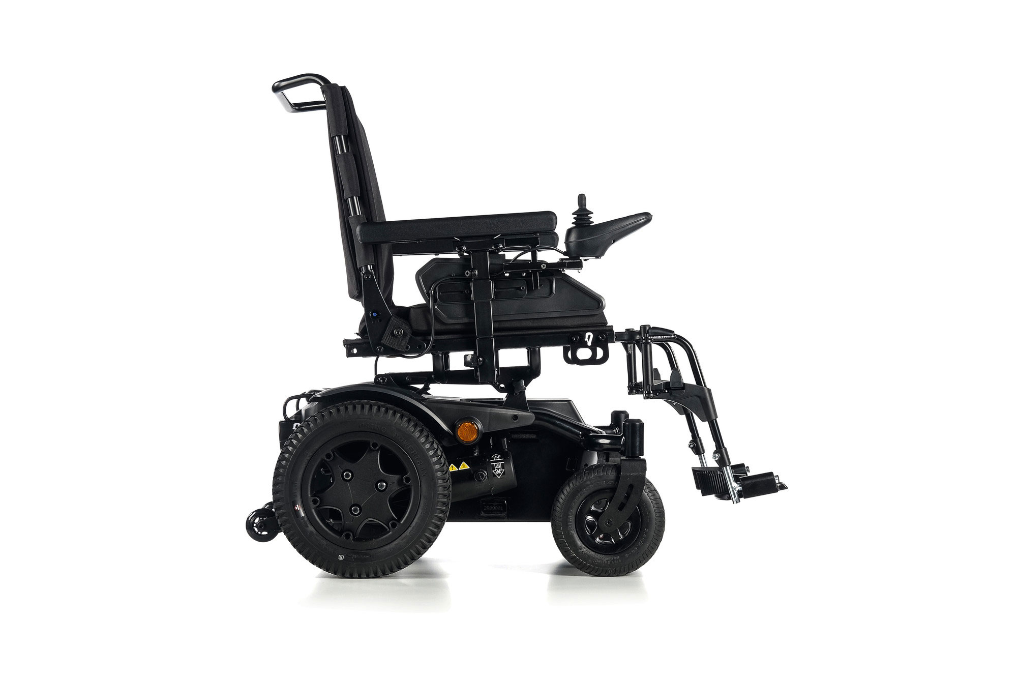 The narrowest chassis available (580 mm), 70 mm (3”) centre of gravity and 22° tilt-in-space, make the Q200 R the smallest rear wheeldrive tilt-in-space powerchair on the market.